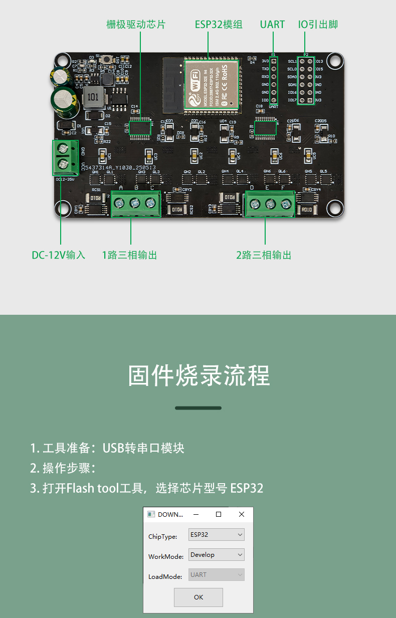 ESP32 Simple FOC双路无刷电机驱动板 大功率20A 无线WIFI蓝牙