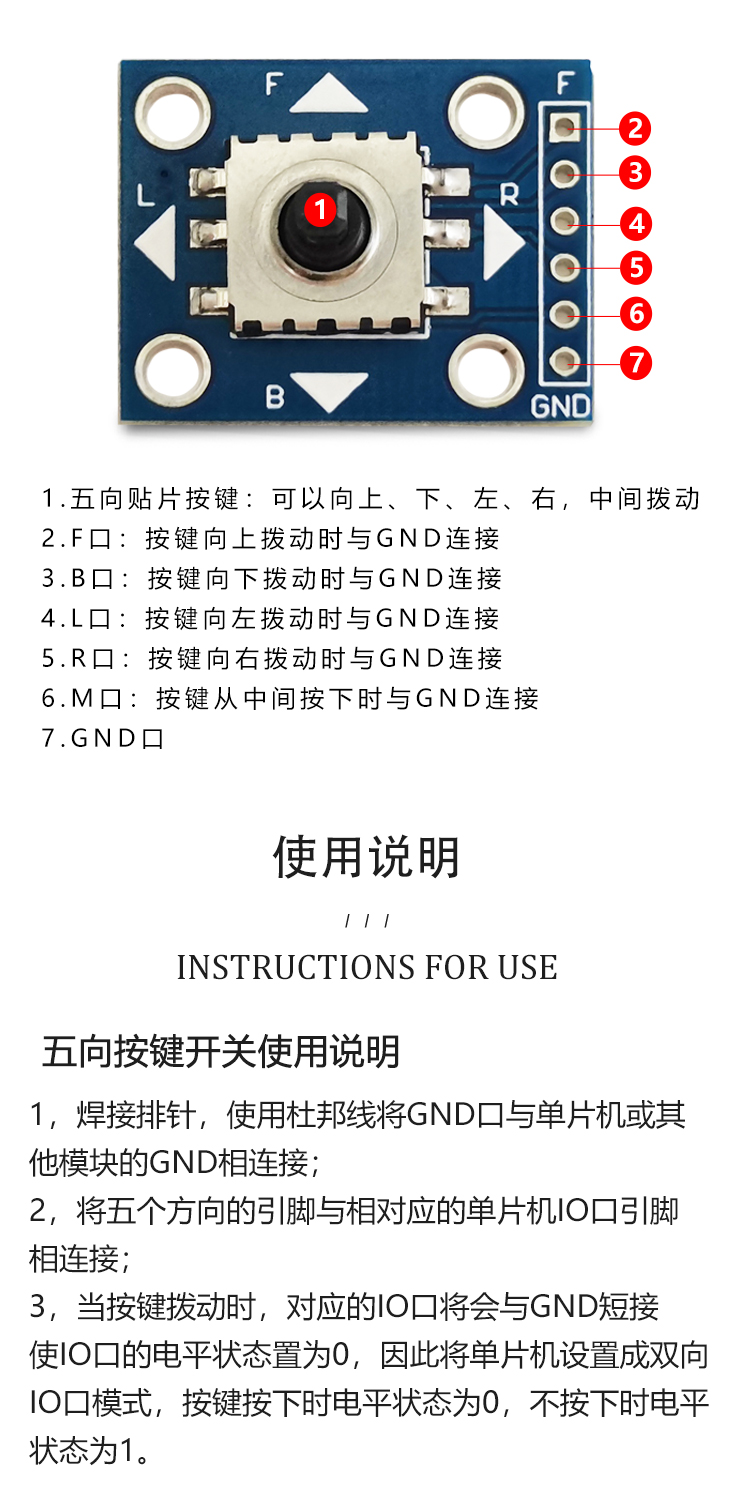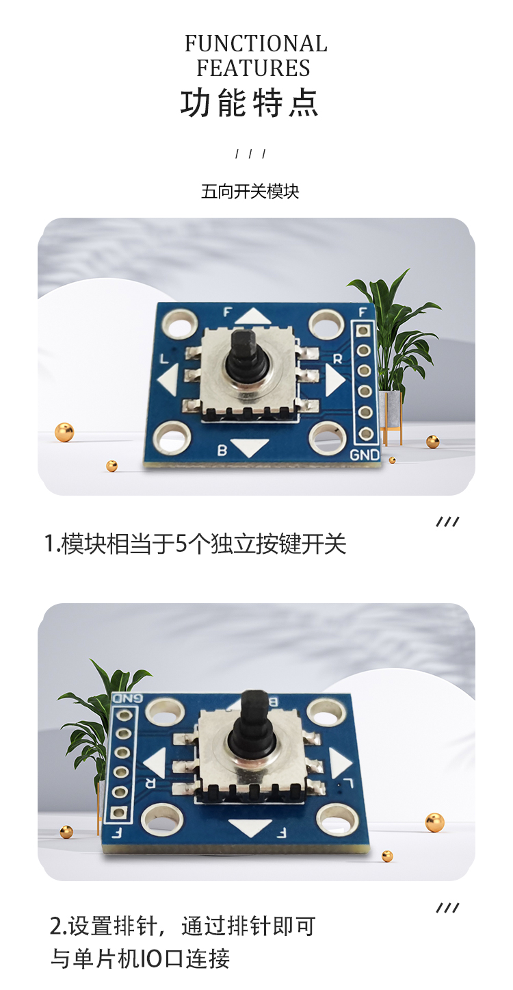 五向导航按键模块 5D摇杆 单片机 独立键盘开关