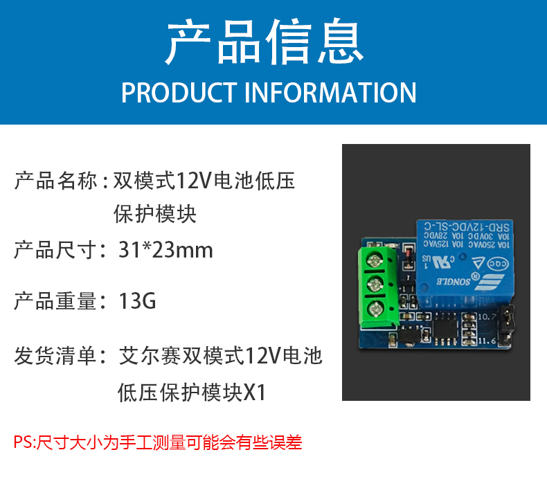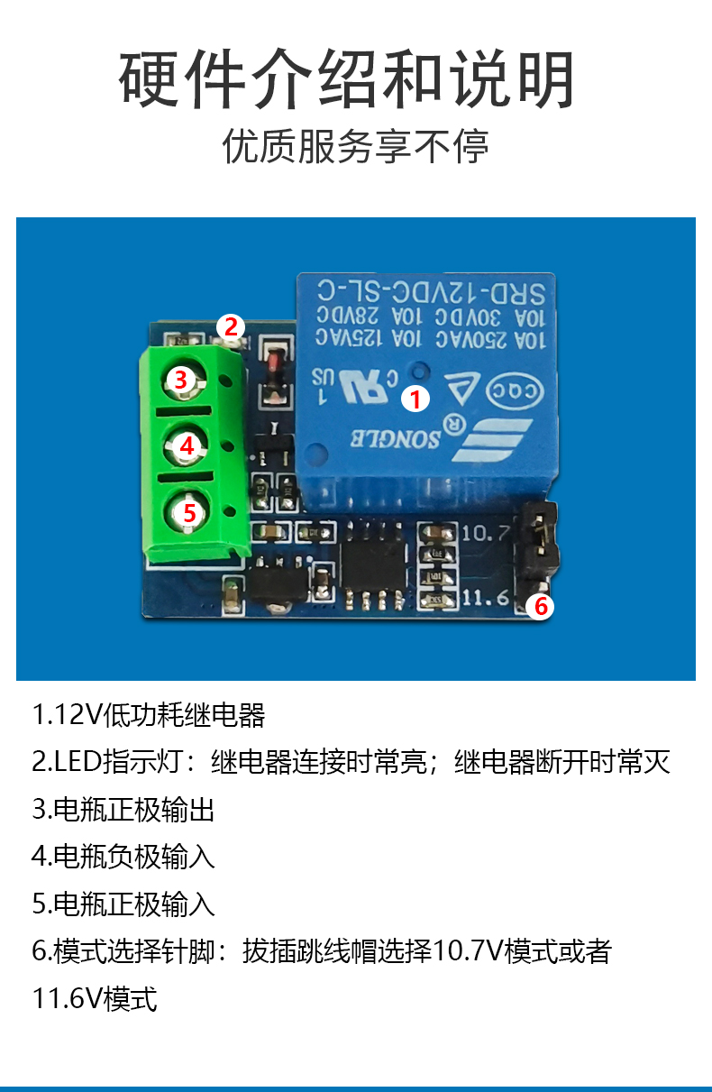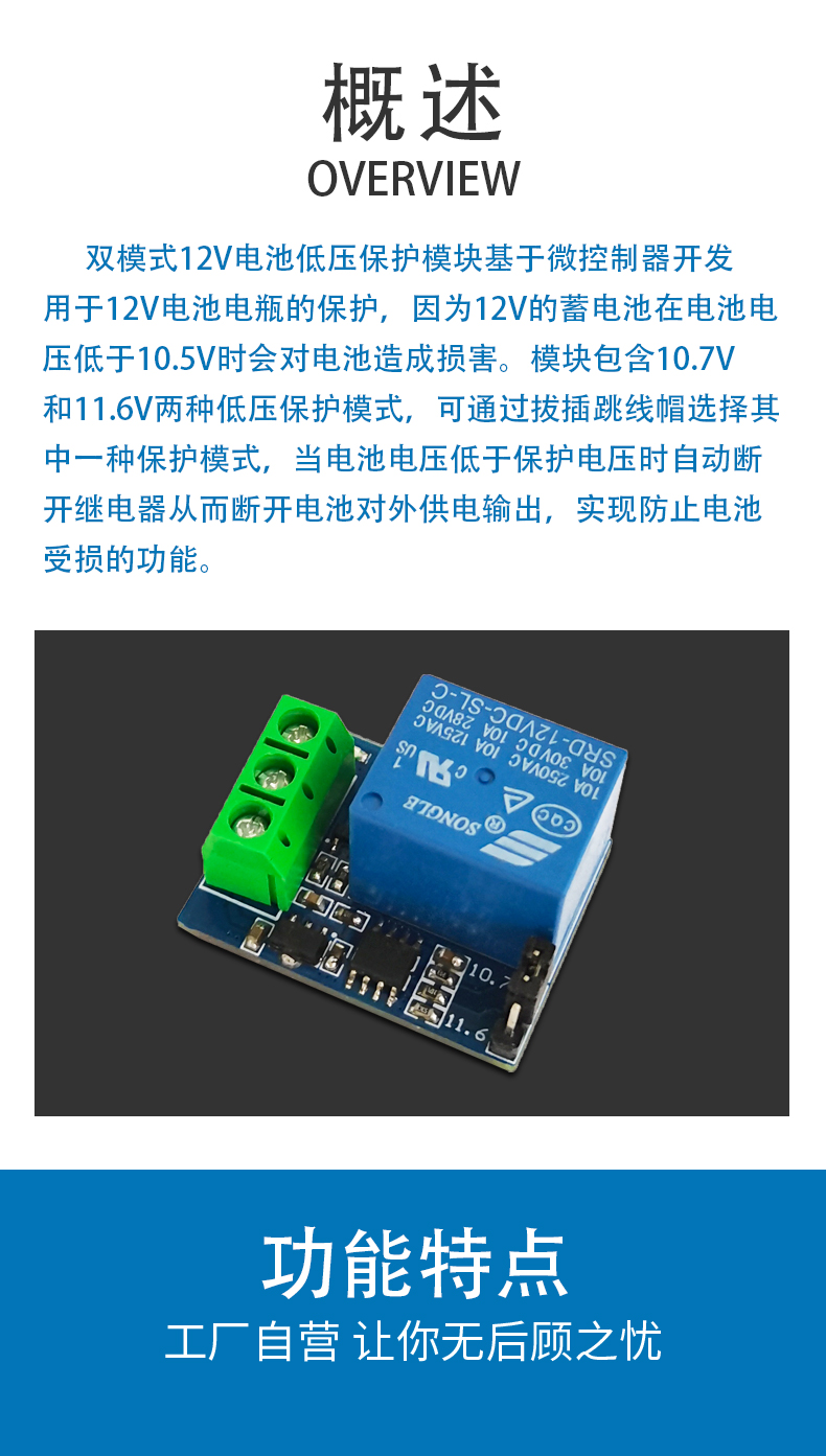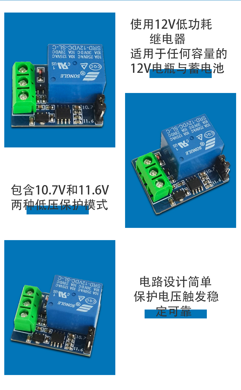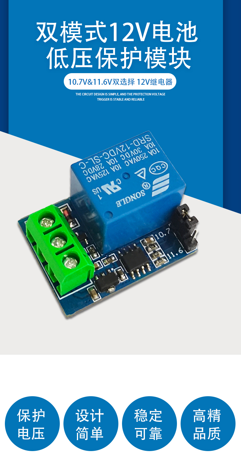 12V铅酸蓄电池低压过放保护模块 10.7V&11.6V双模式切换