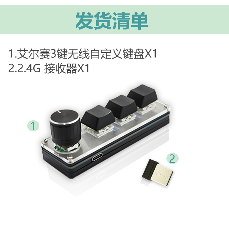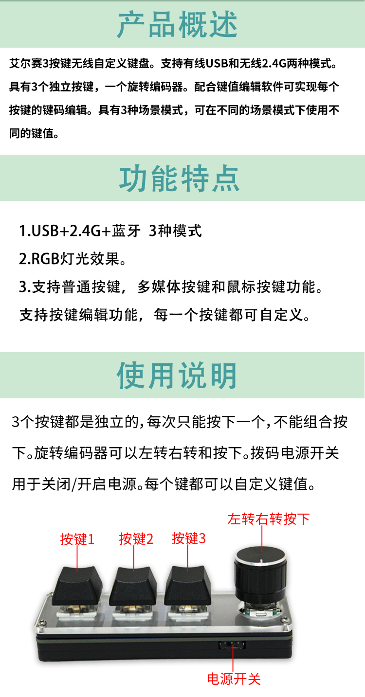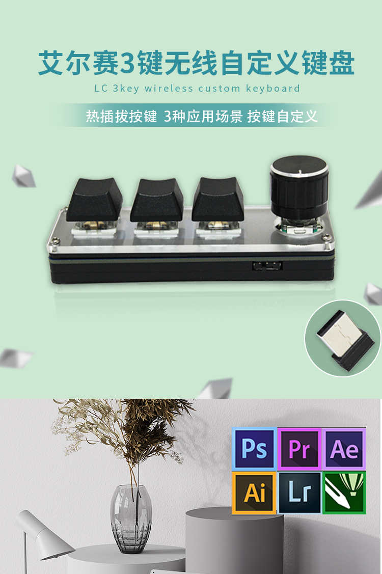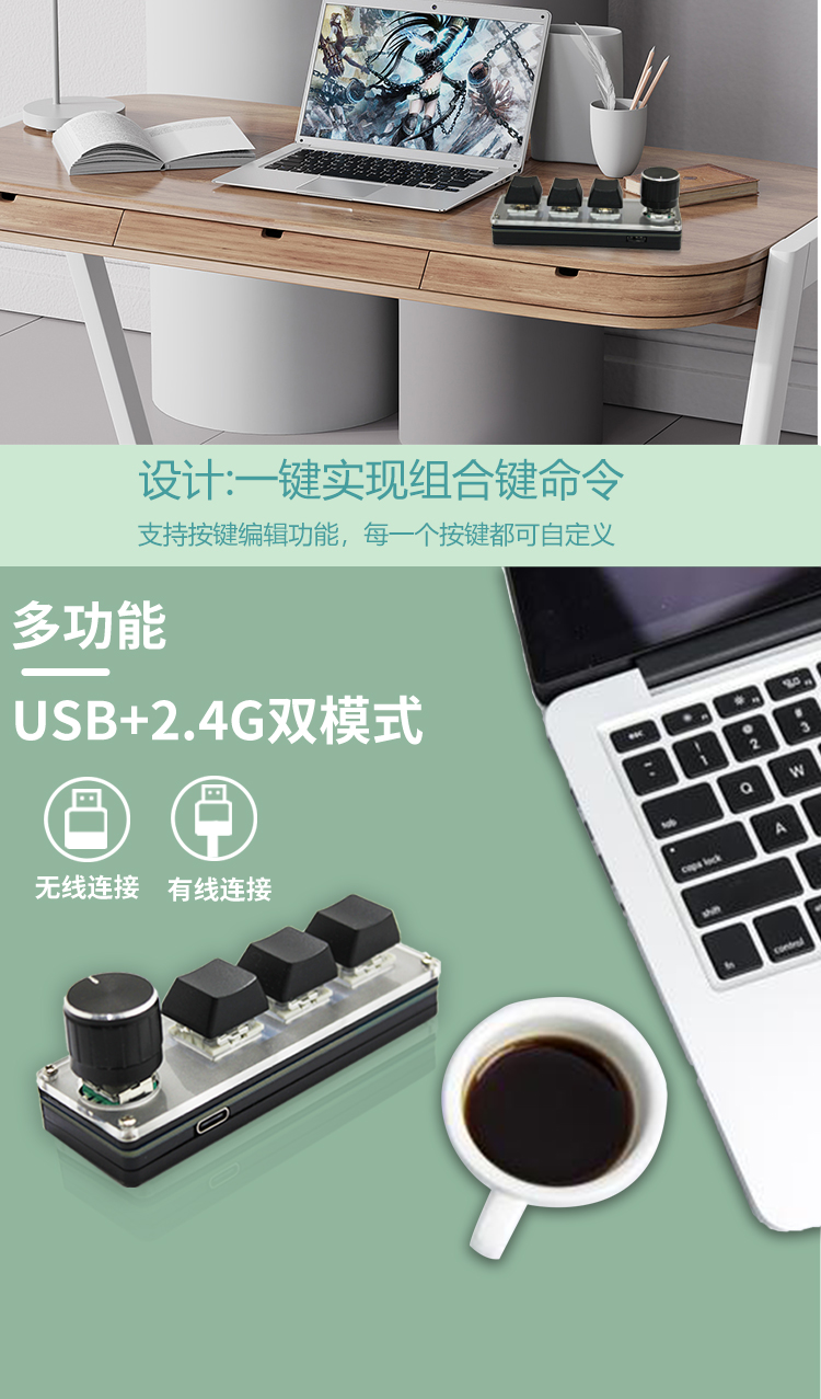 3键无线自定义小键盘 2.4G USB两种模式 热插拔按键 3种应用场
