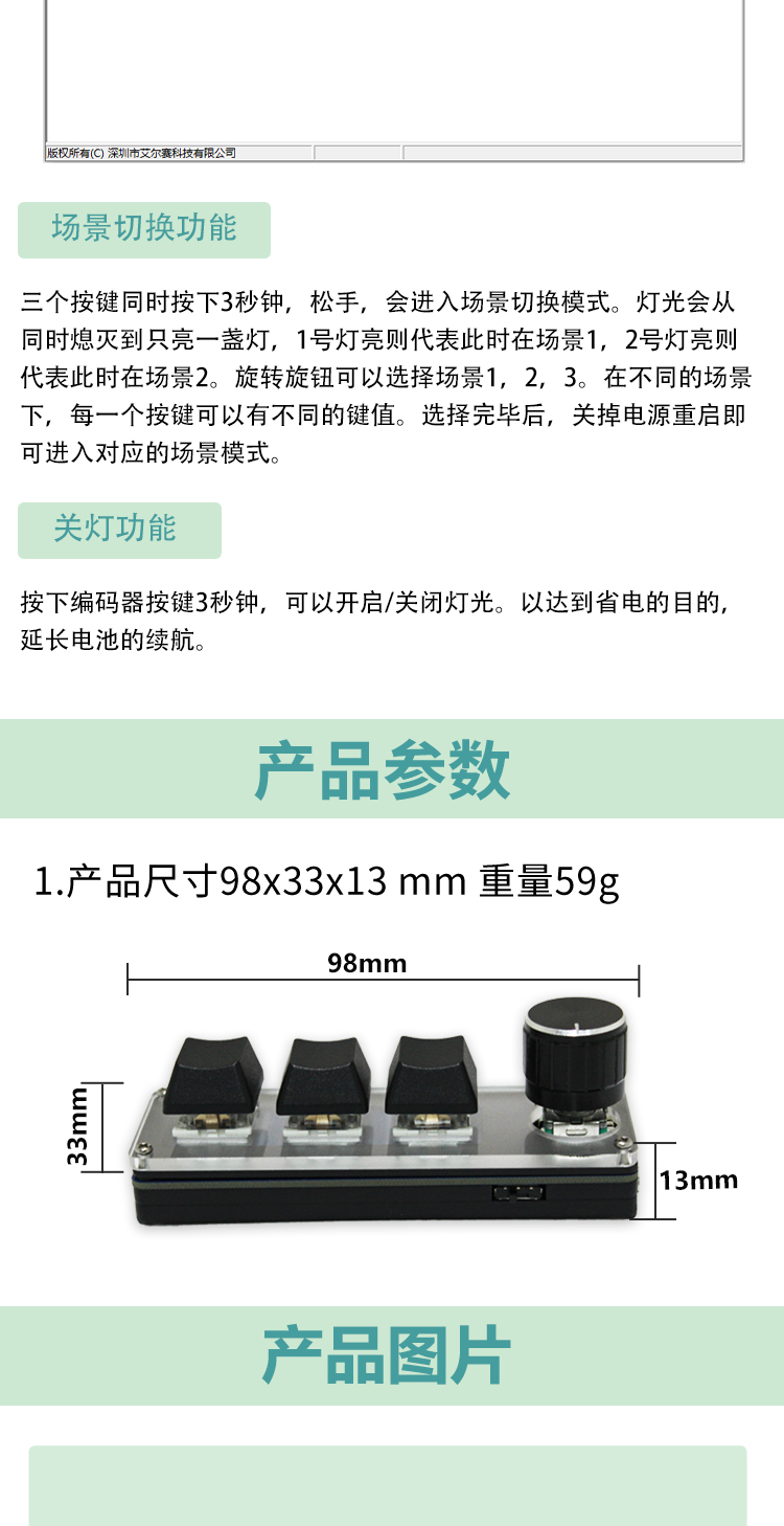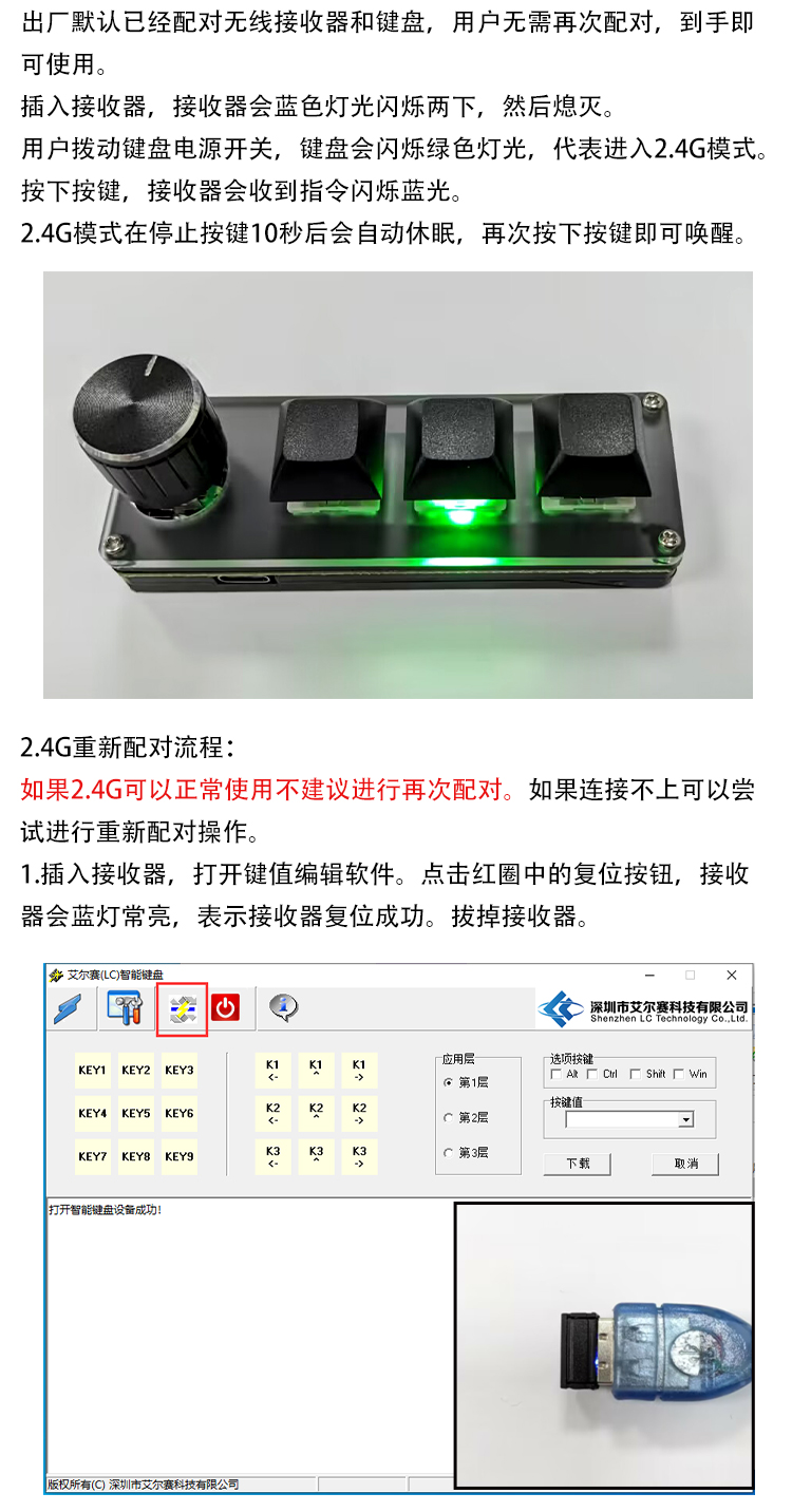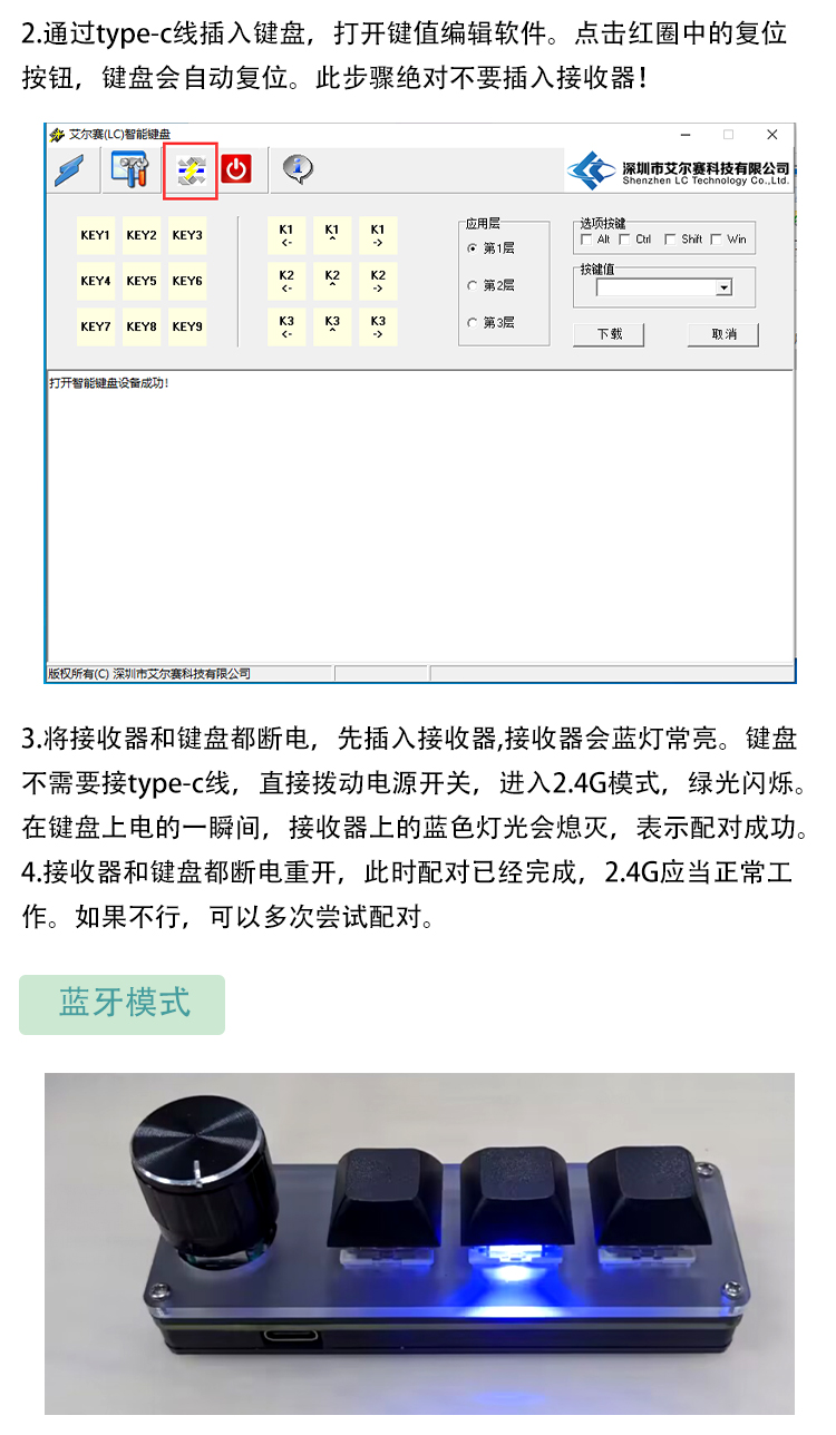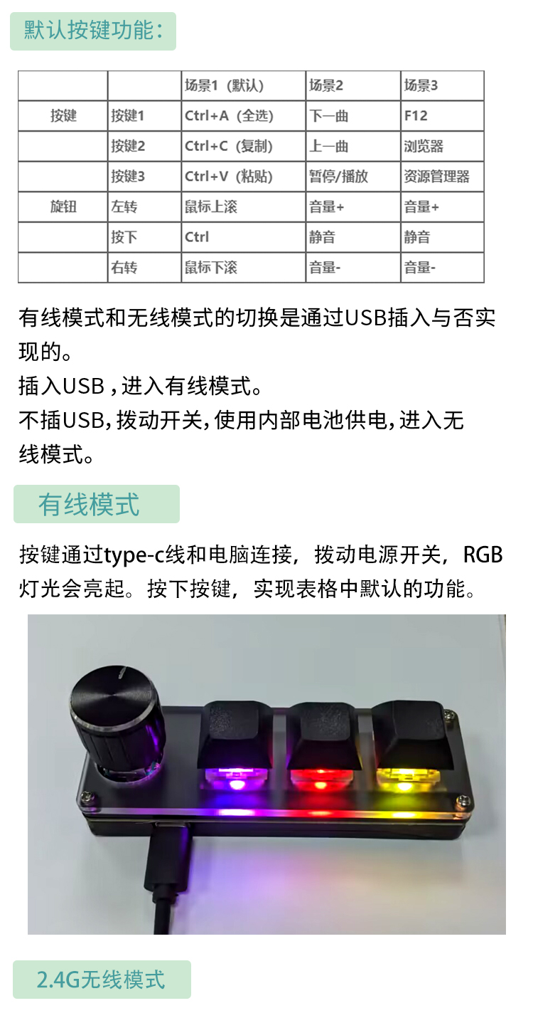 3键无线自定义小键盘 2.4G USB两种模式 热插拔按键 3种应用场