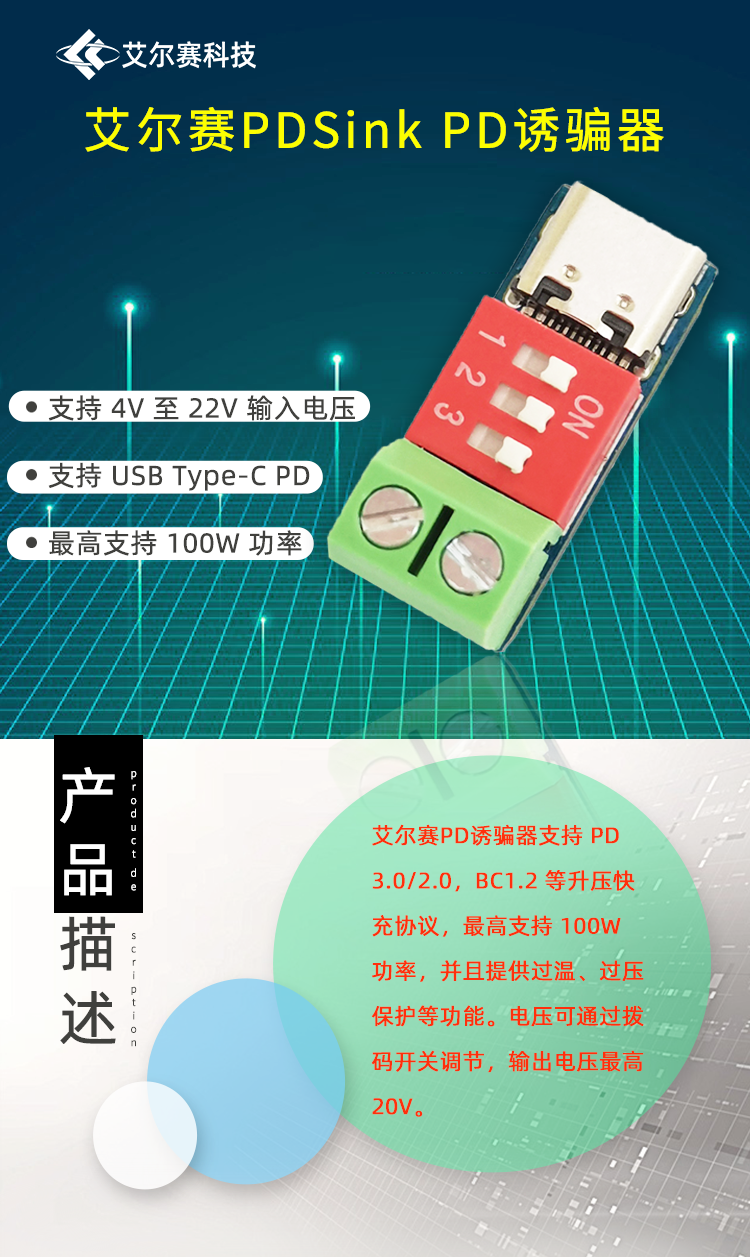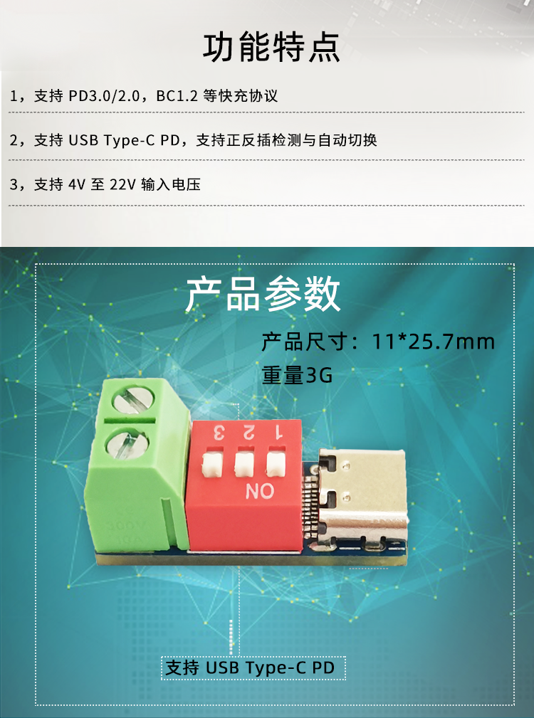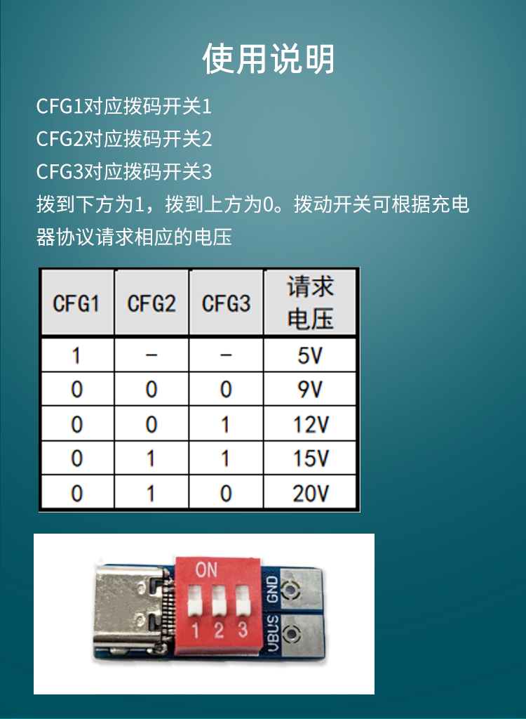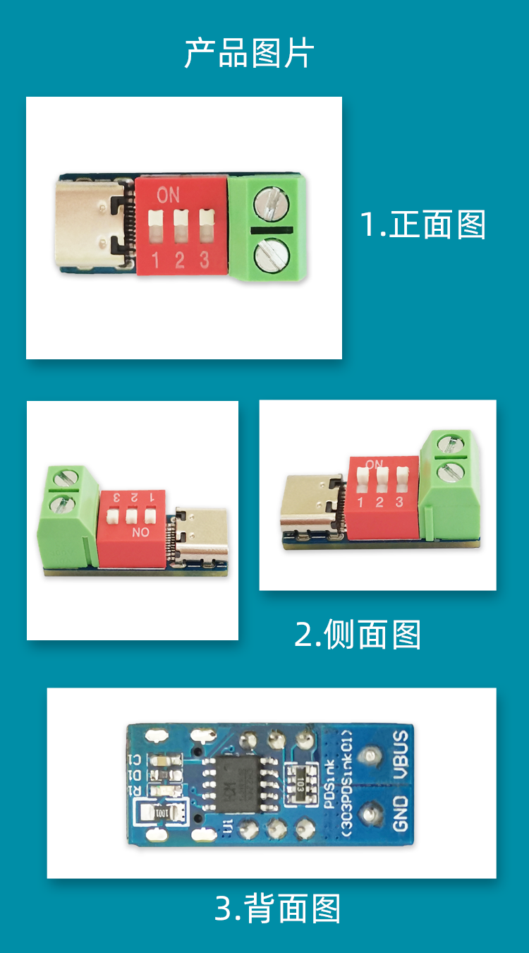 PDSink PD诱骗器 QC PD快充测试板可调电压 5~20V拨码调节