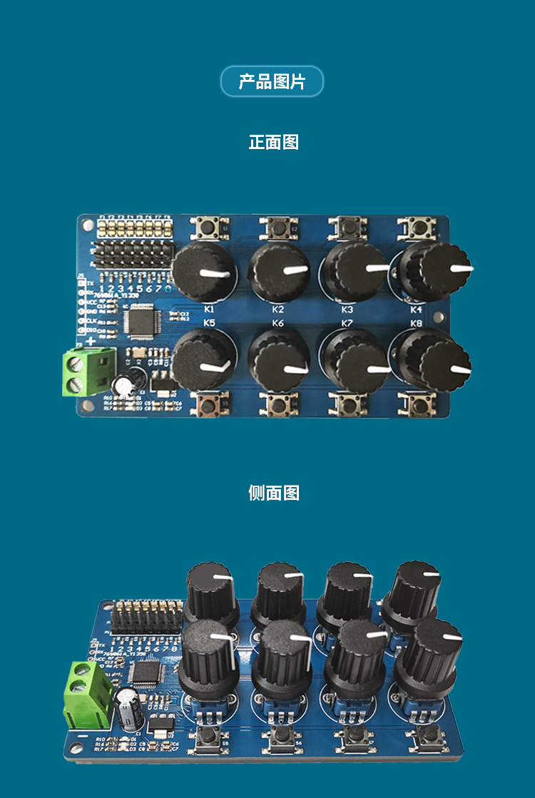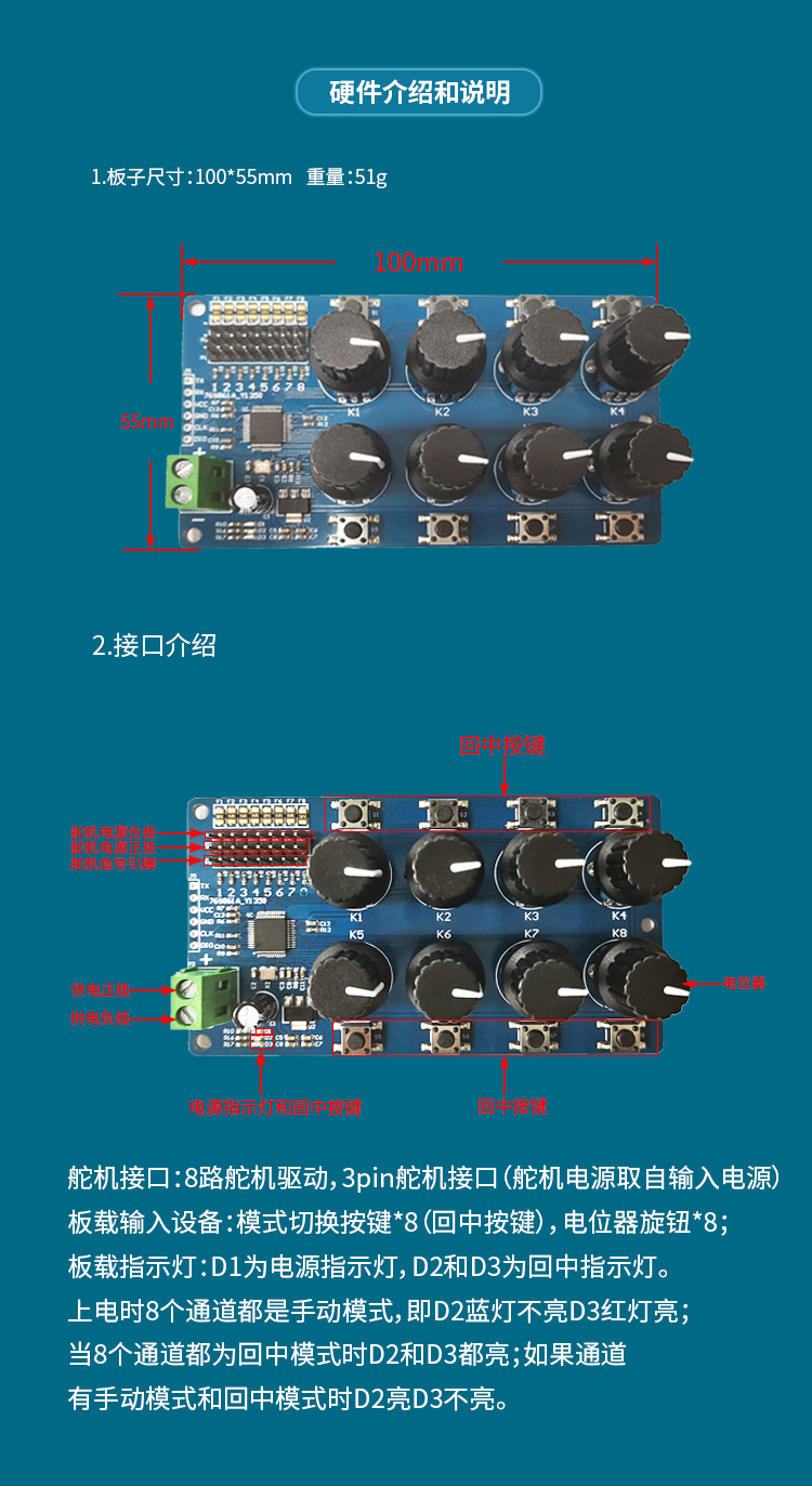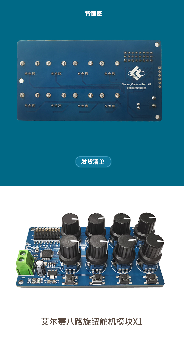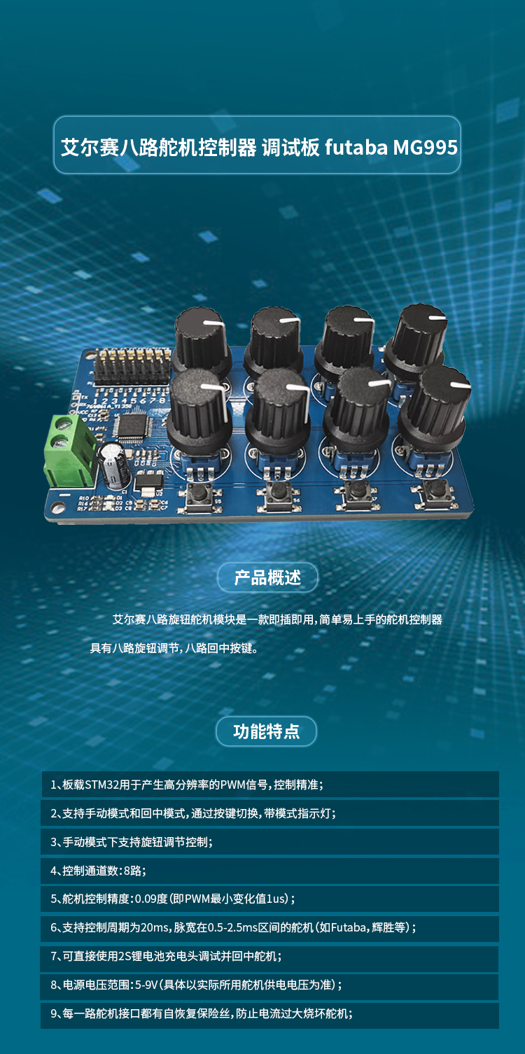 八路舵机控制器 调试板 futaba MG995 SG90等舵机调试板回中仪