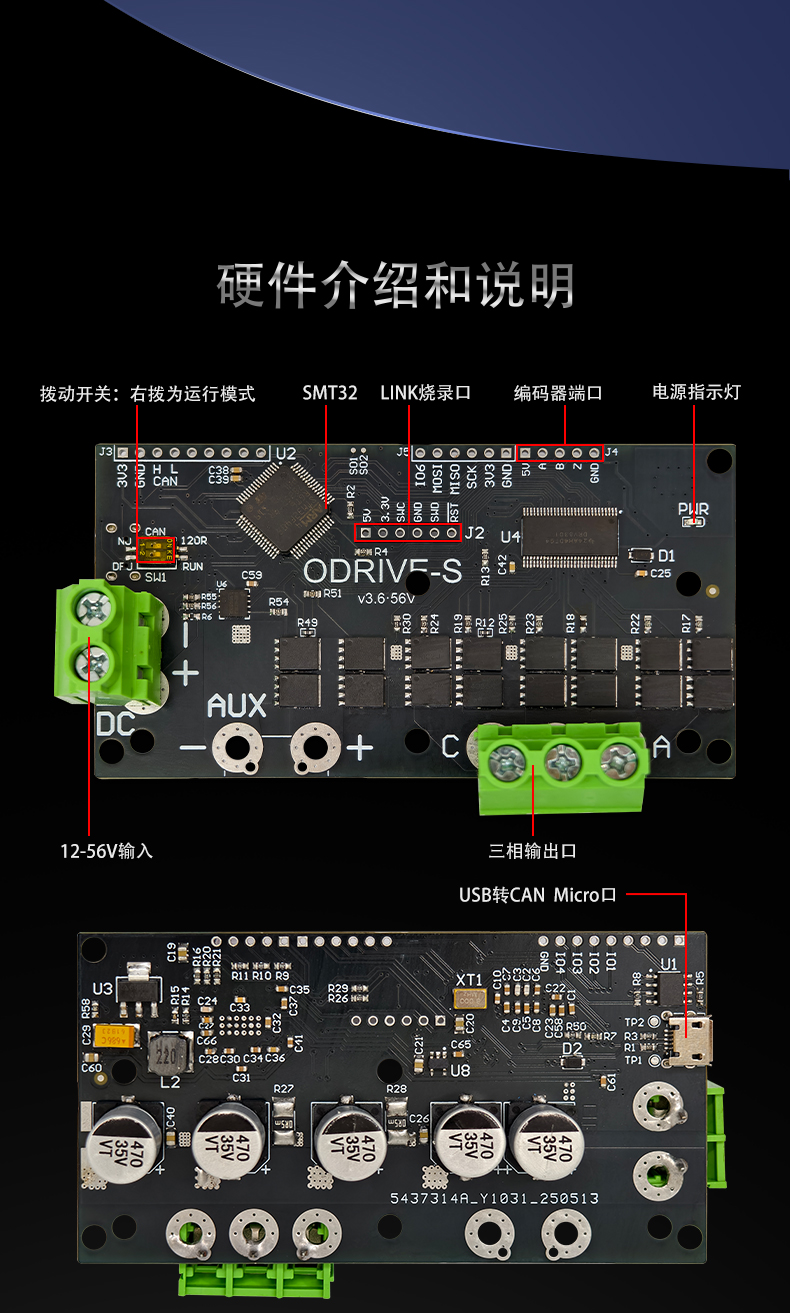 ODrive-S_V3.6-FOC-BLDC伺服单电机控制器