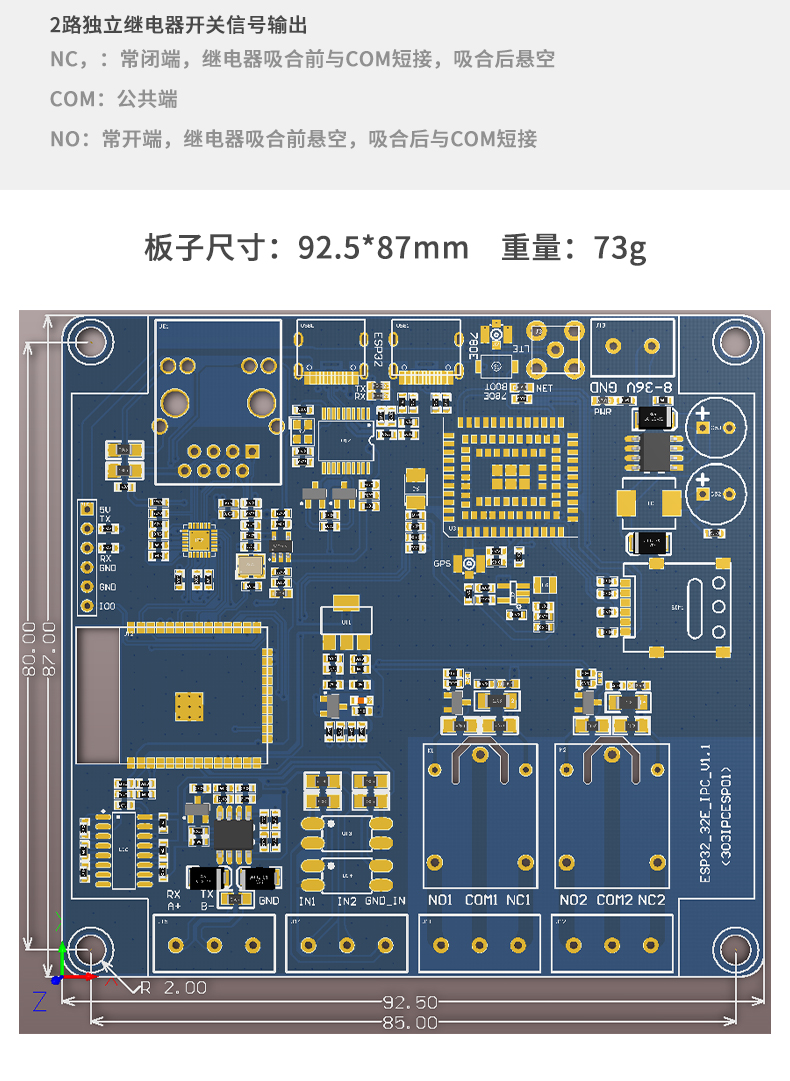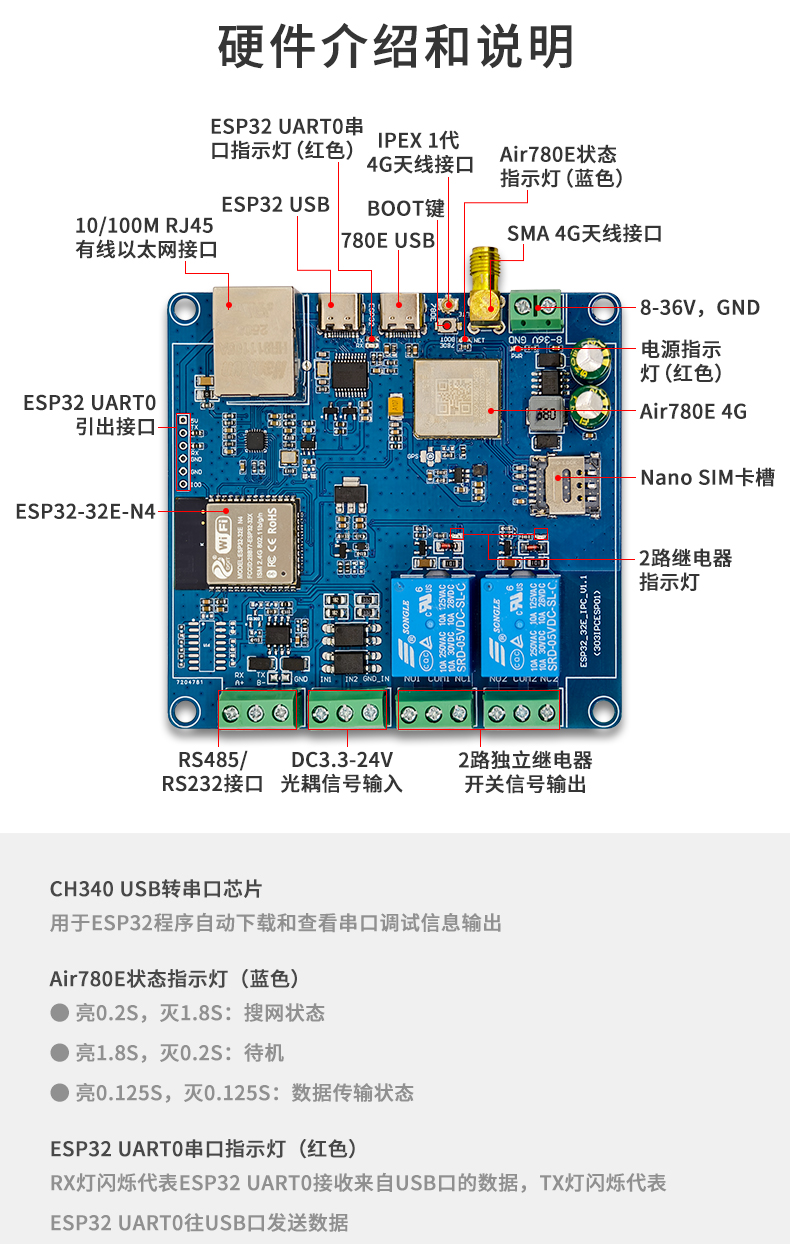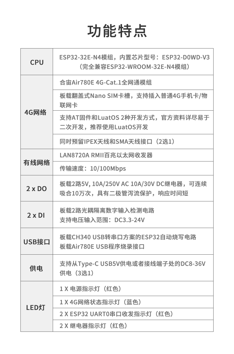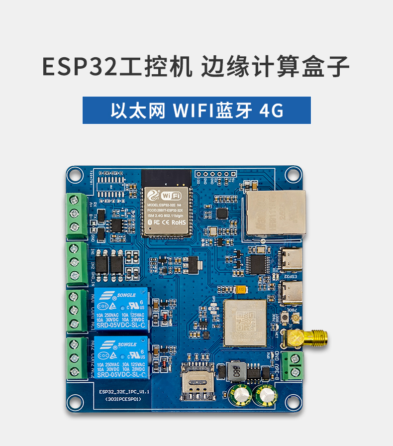 ESP32工控机 边缘计算 以太网 WIFI BT 4G RS485/232 2进2出 二开