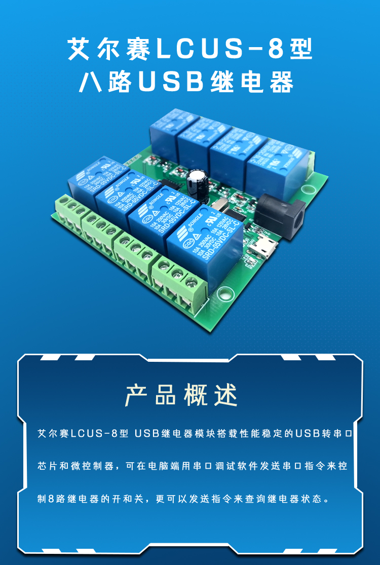 艾尔赛LCUS-8型八路USB继电器
