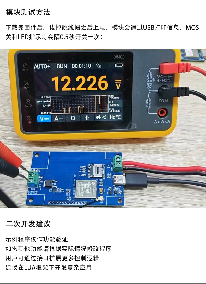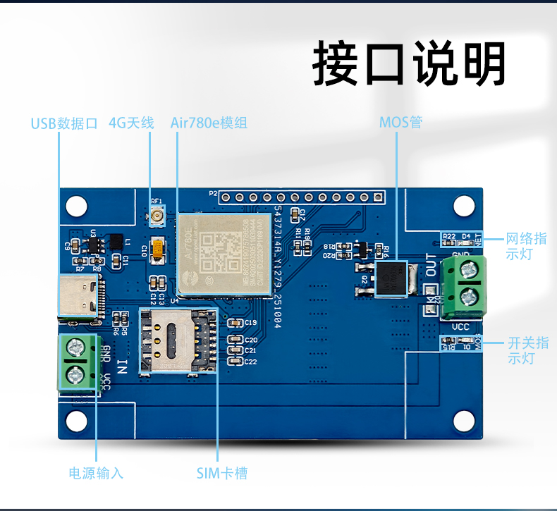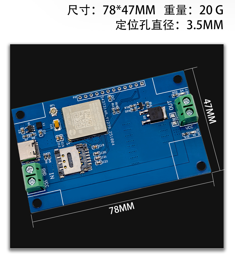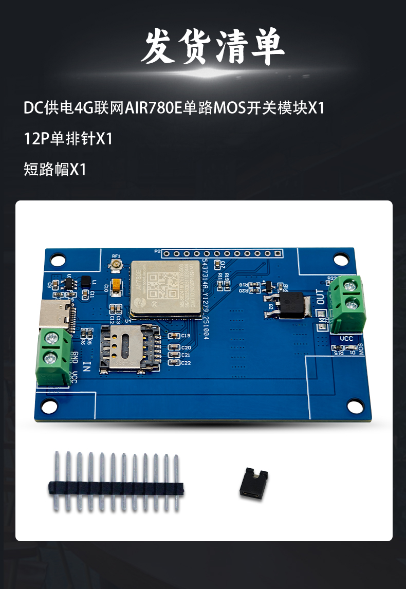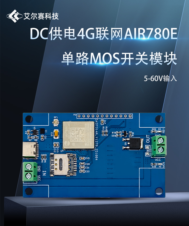 4G联网AIR780E单路MOS开关模块 开发板 DC5-60V供电