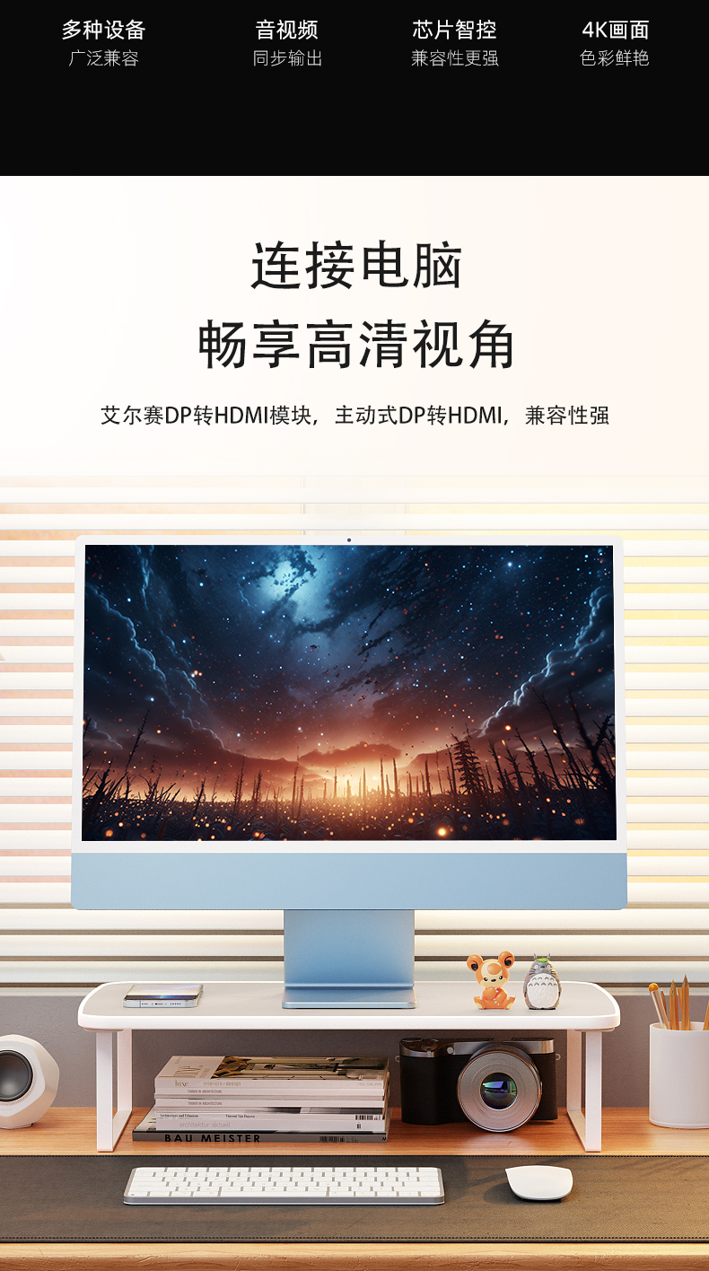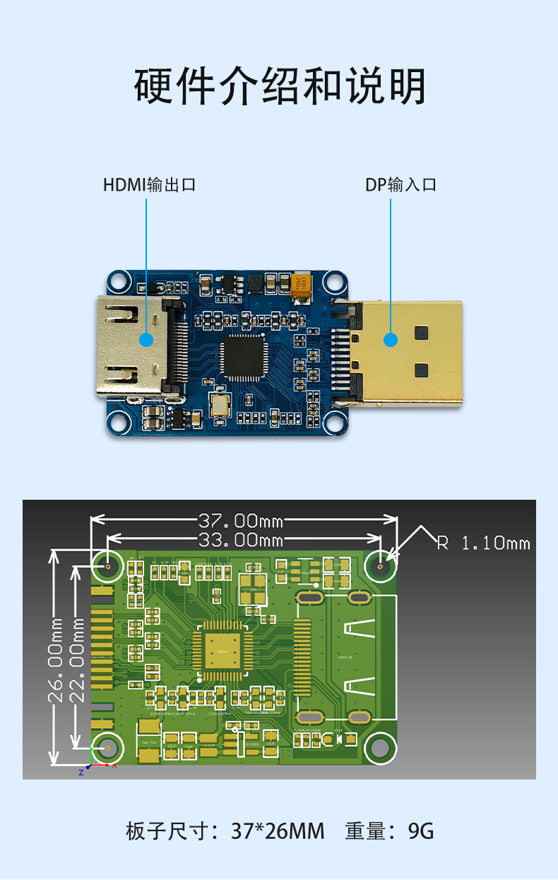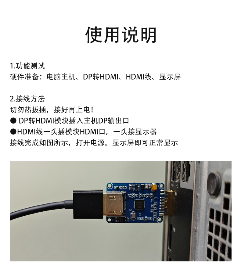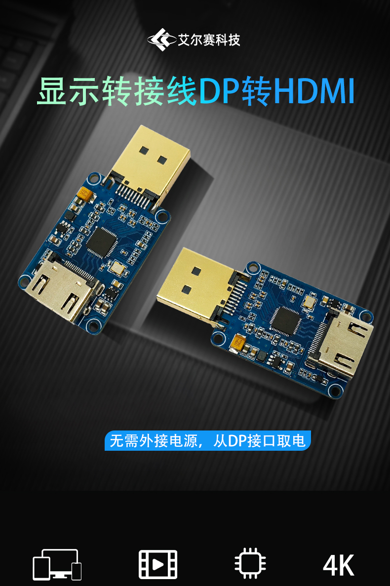 DP公头转HDMI母座模块 PS176主动转换 4K@60HZ显示器高清接口转换