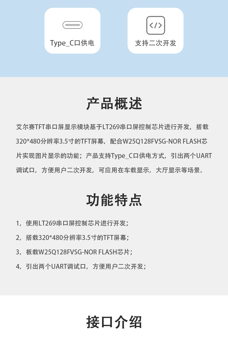 LT269 HMI 智能串口屏 显示模块 3.5寸TFT带触摸 二次开发