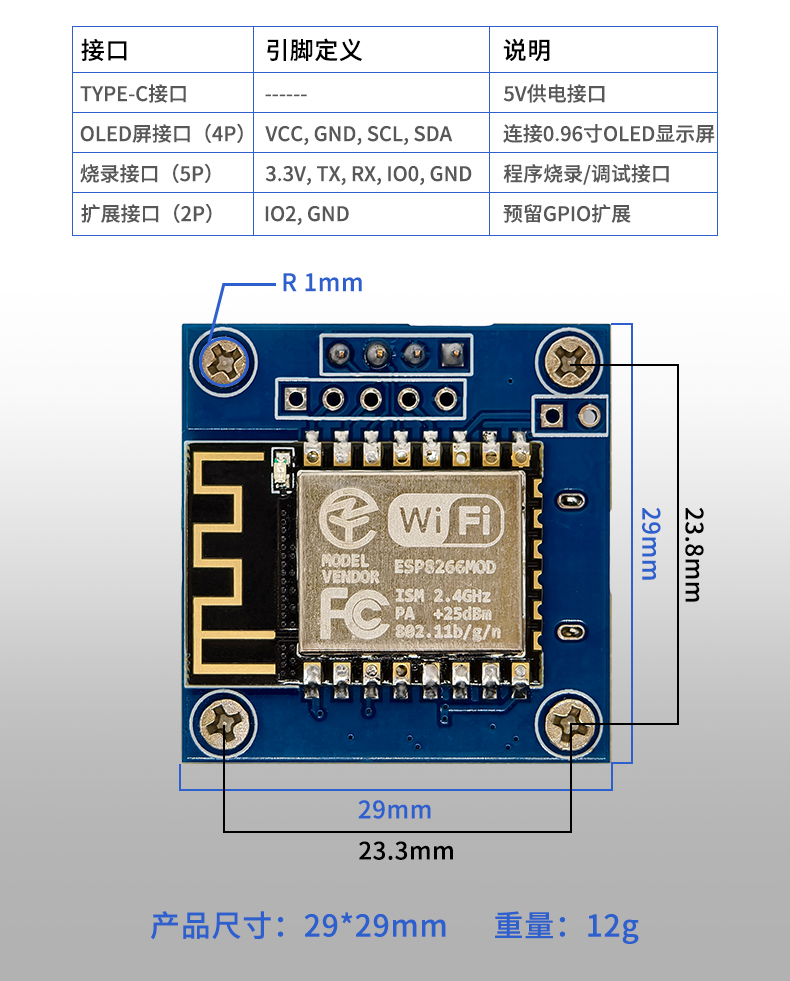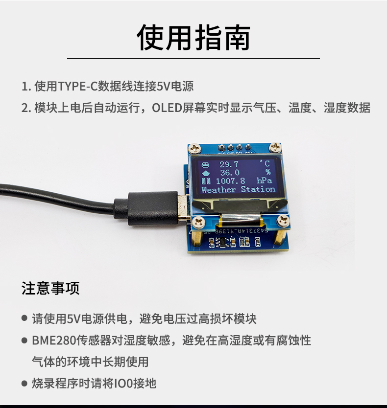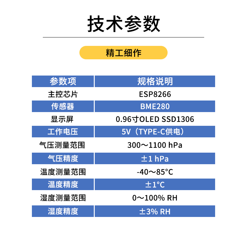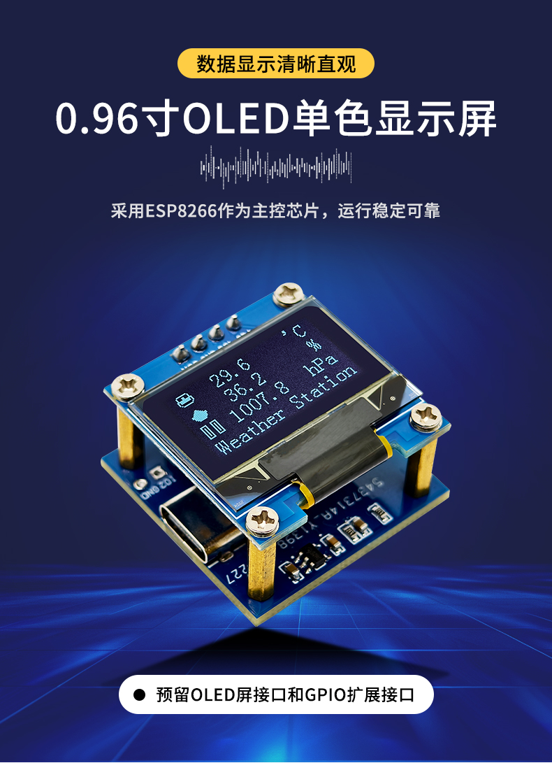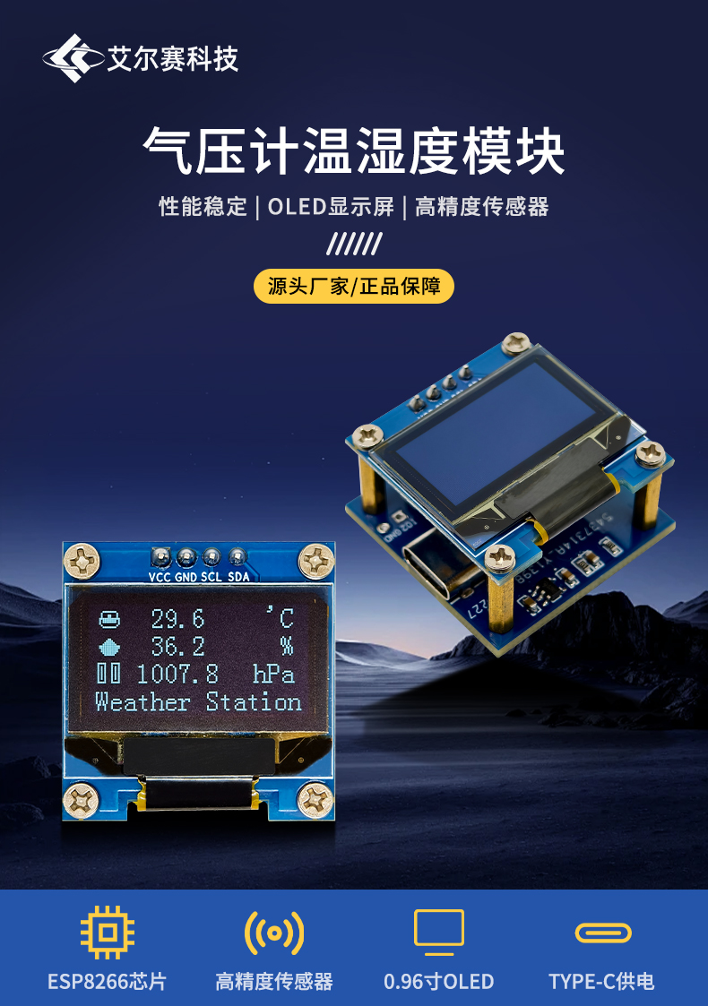 ESP12 BME280 0.96英寸OLED气压计温湿度模块