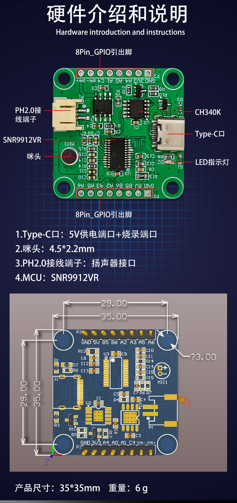 SNR9912VR 离线语音识别开发模块 AI deepseek 二次开发