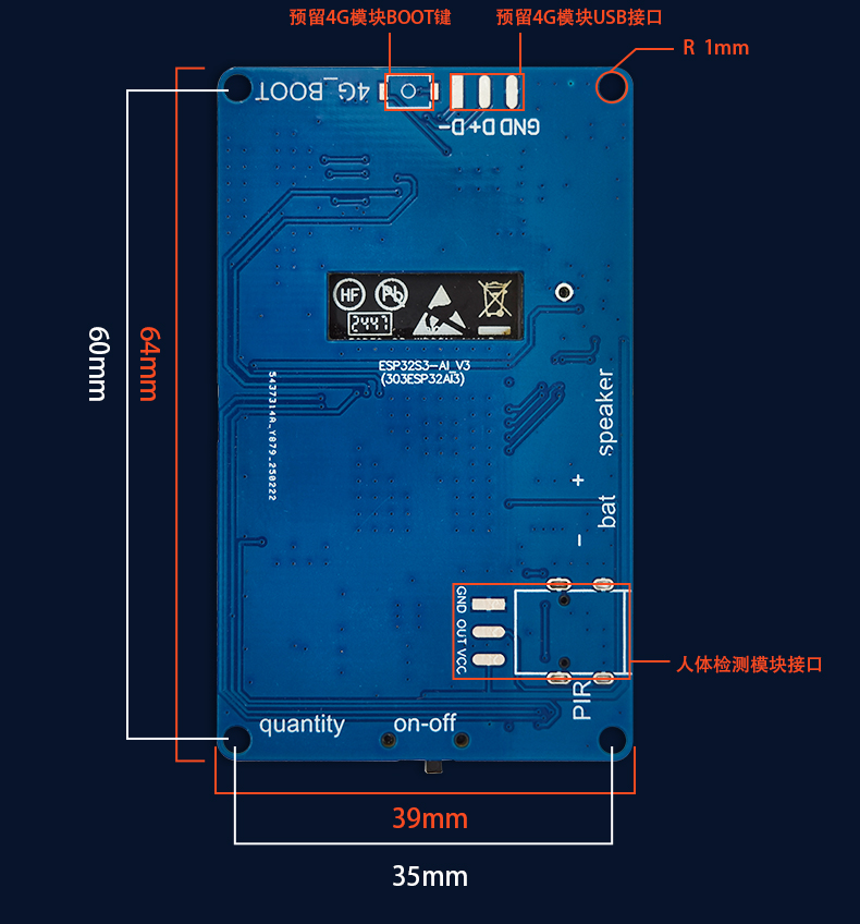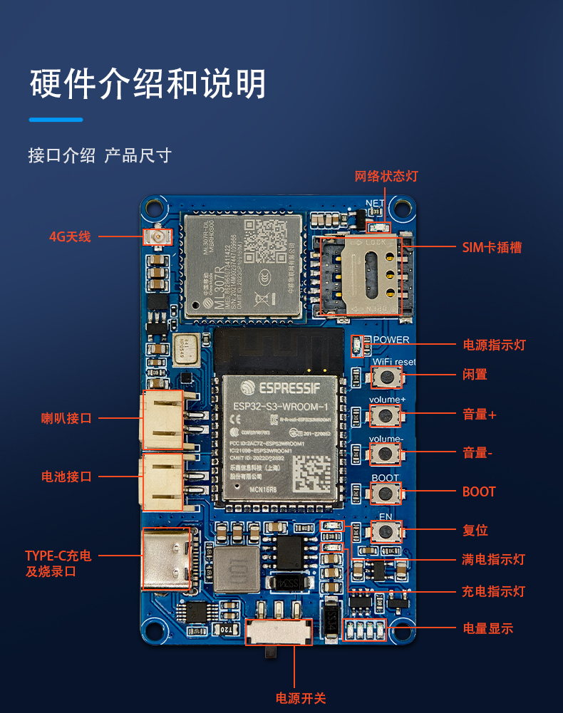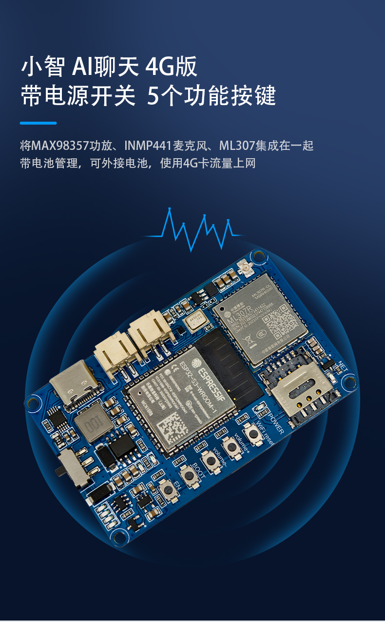 虾哥小智AI 语音聊天模块 支持deepSeek大模型 4G款不带屏幕