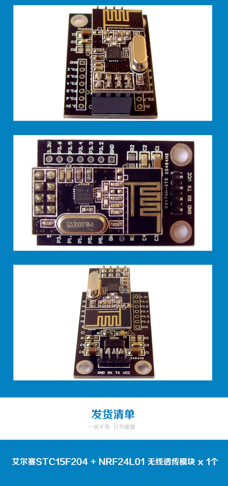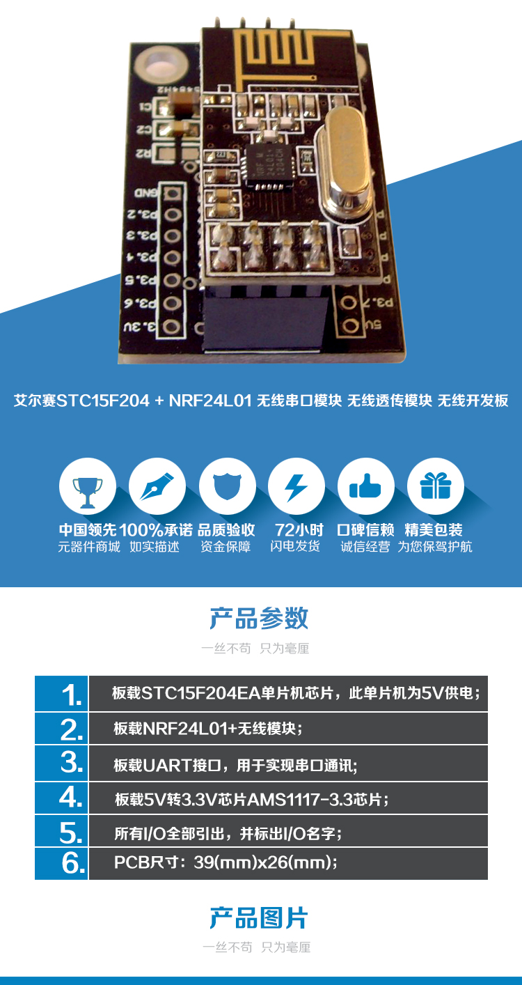 STC15F204 + NRF24L01 无线串口模块 无线透传模块 无线开发板