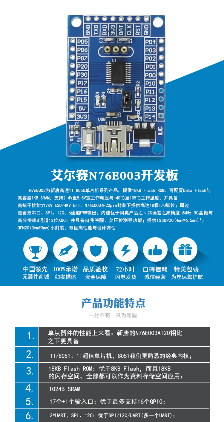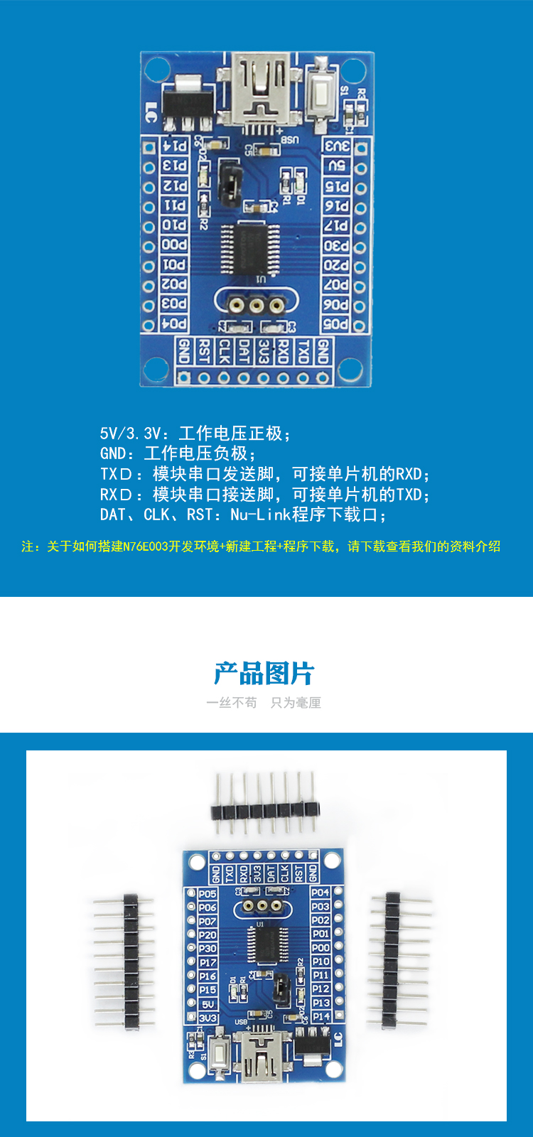 N76E003AT20单片机开发板 系统板 核心板 新唐Nu-Link系列 扩展板