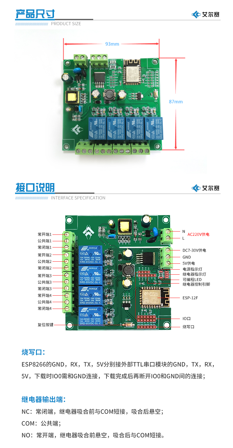 ESP-12F四路继电器开发板