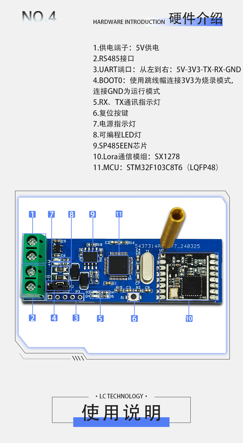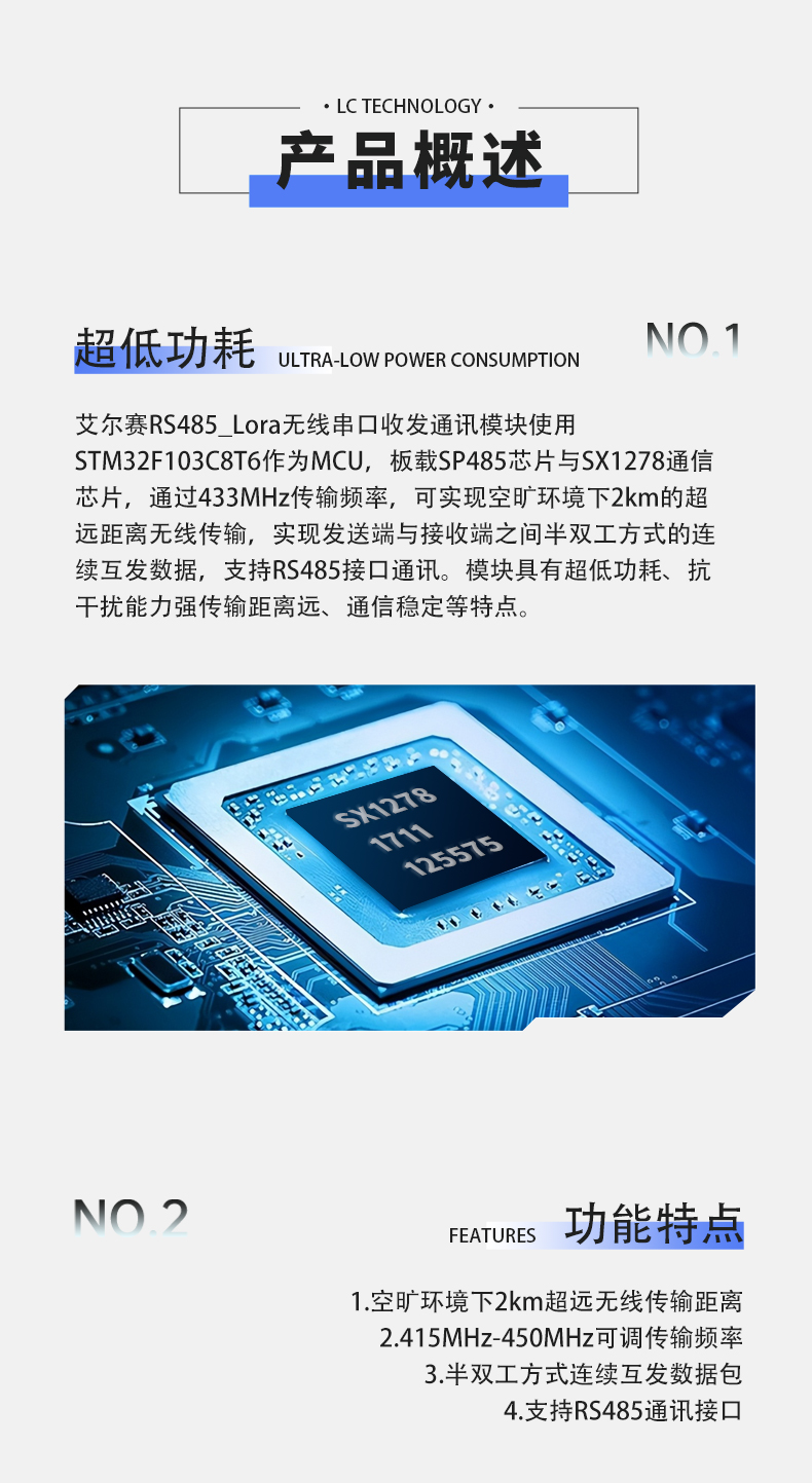 RS485转LoRa无线串口收发通讯模块