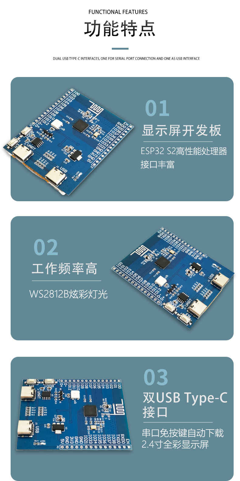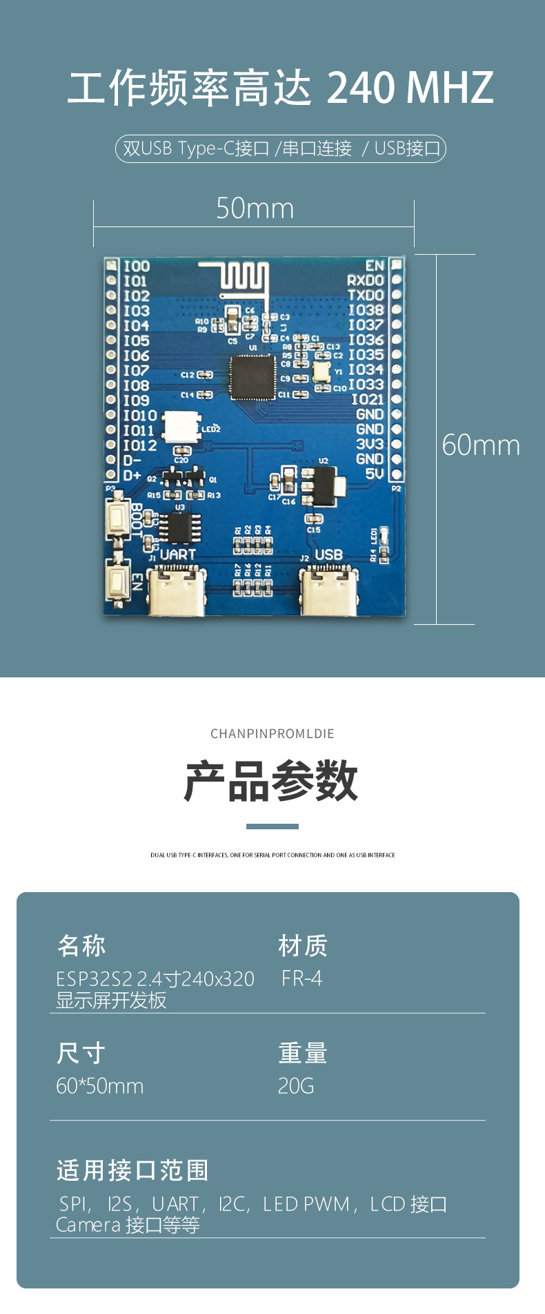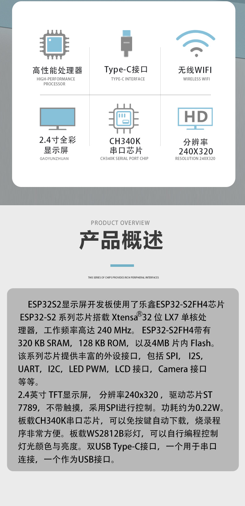 ESP32S2 2.4寸240x320显示屏 开发板 无线wifi开发板 USB电脑副屏