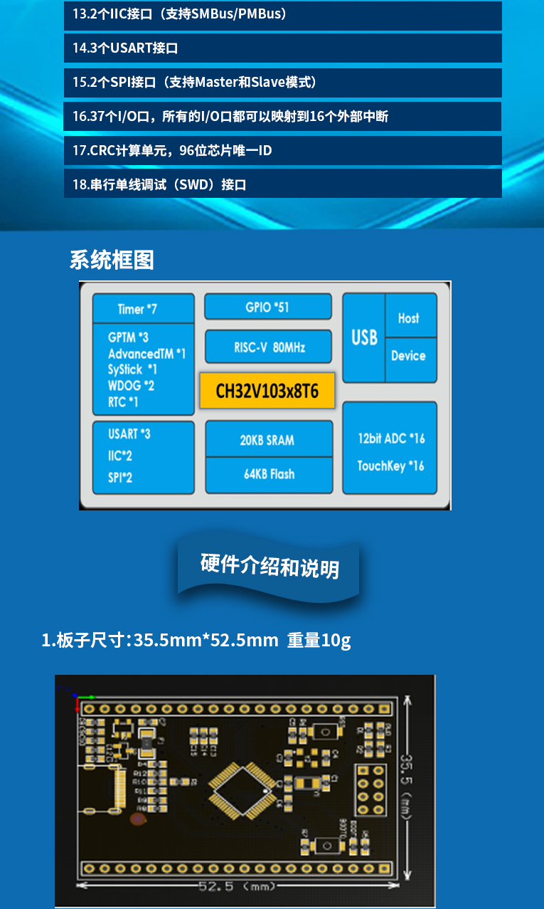 CH32V103C8T6核心板RISC—V MCU可代替STM32F103C8T6