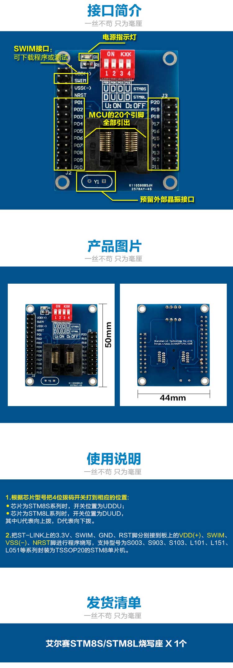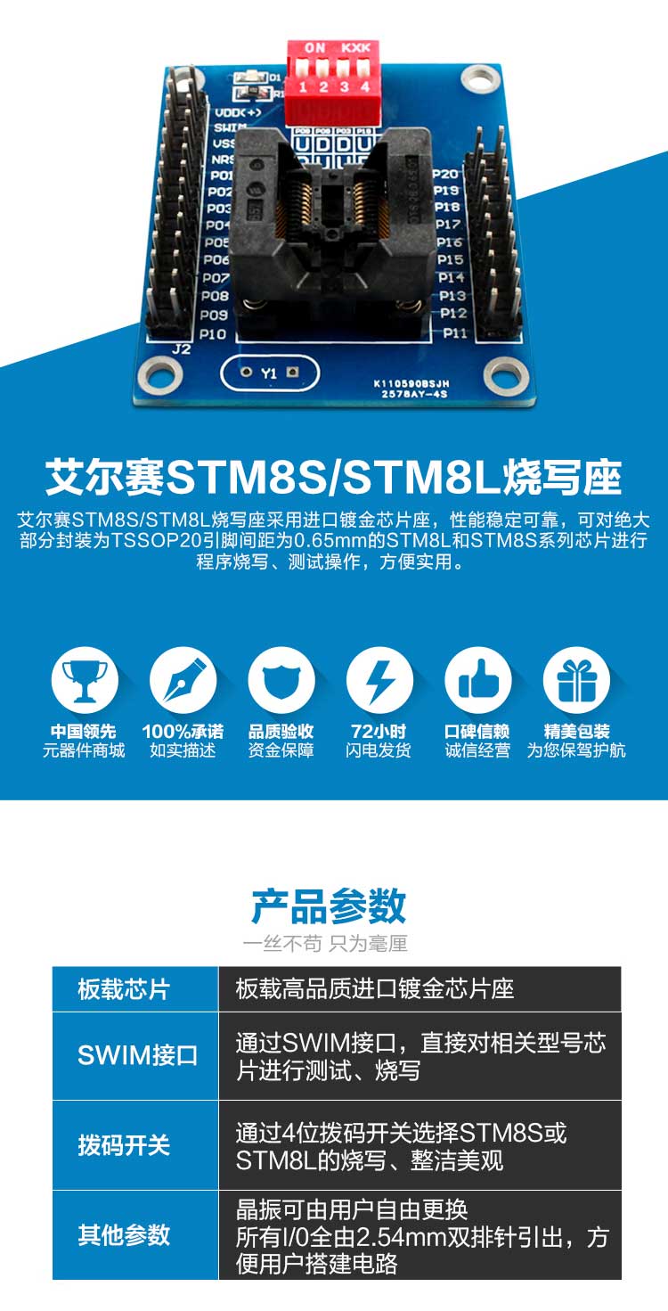 STM8S 8L TSSOP20 烧写座 测试座 下载器 脱机编程器 编程座