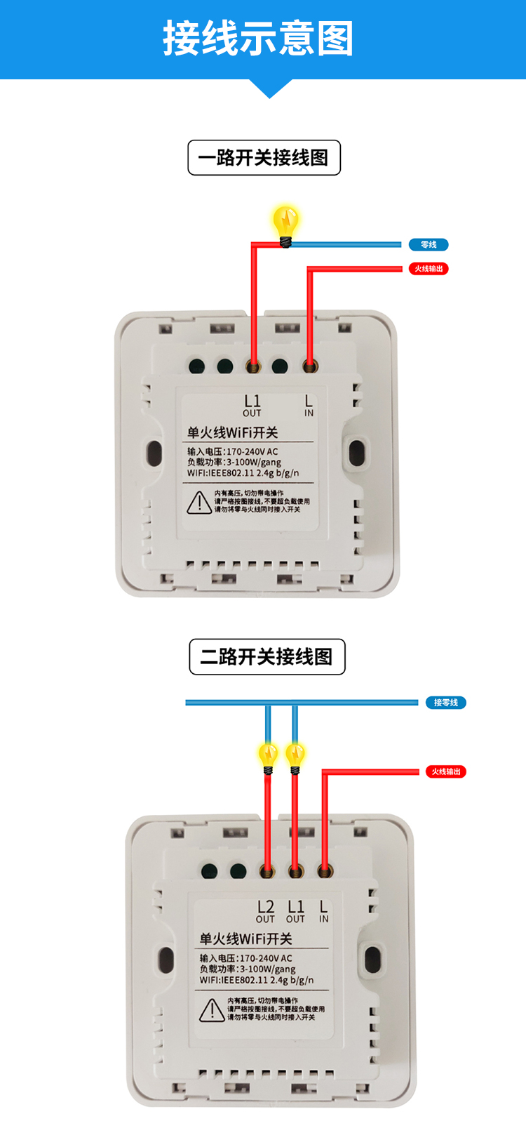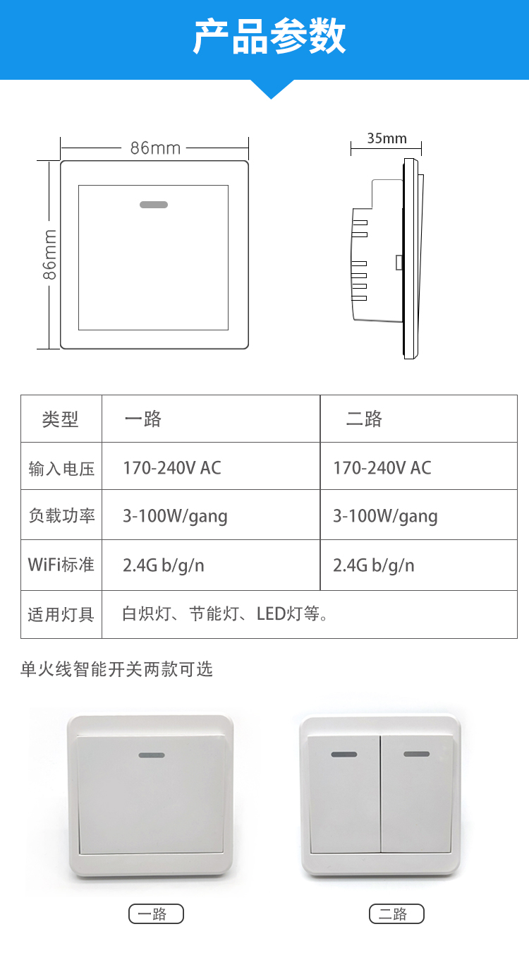 易微联单火线WiFi开关灯具手机远程开关墙壁86型 天猫精灵可控