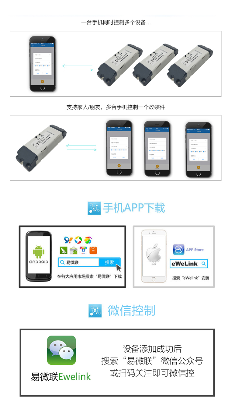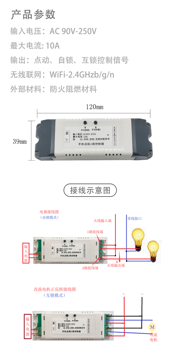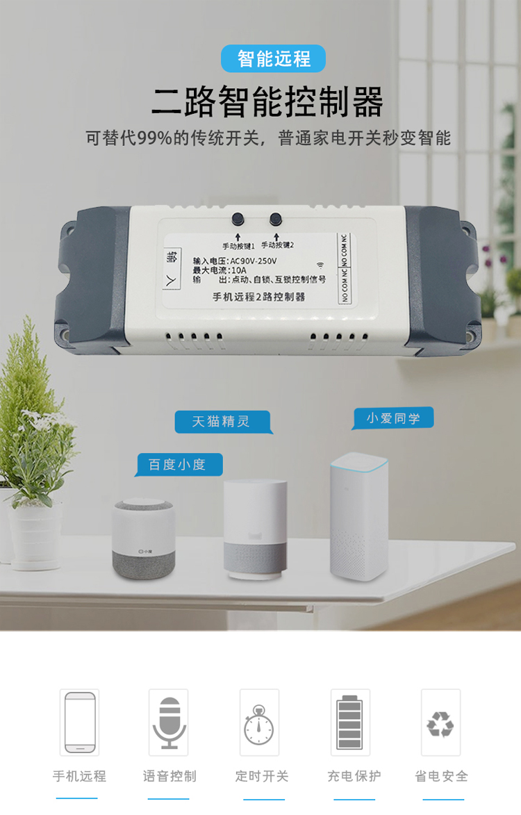 易微联智能家居WIFI手机远程控制 双路继电器开关模块