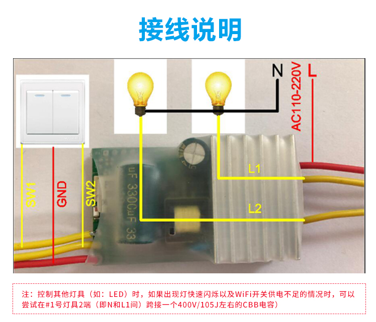 易微联WiFi双路单火线智能开关 改装件 可控硅 手机远程控制