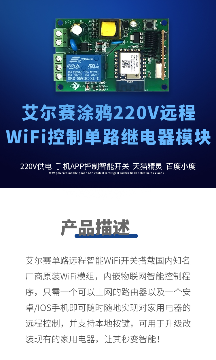 涂鸦220V远程WiFi控制单路继电器模块