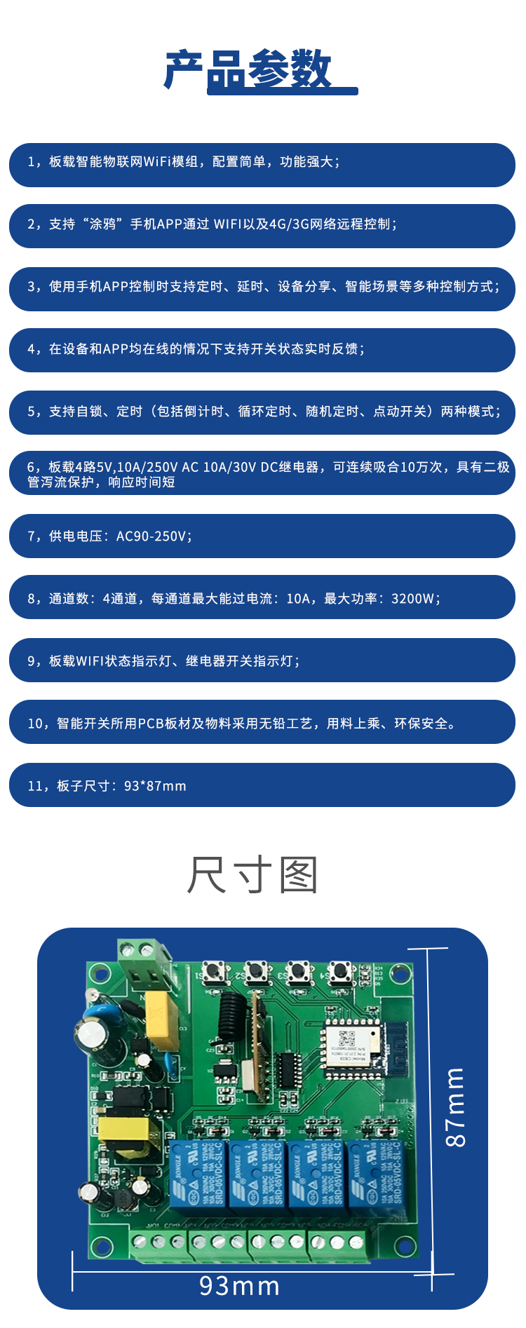 涂鸦(220V版本)远程四路继电器模块