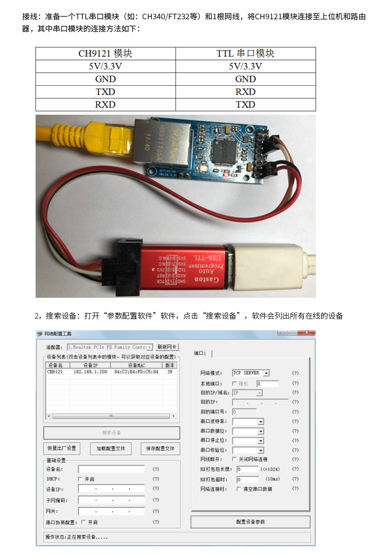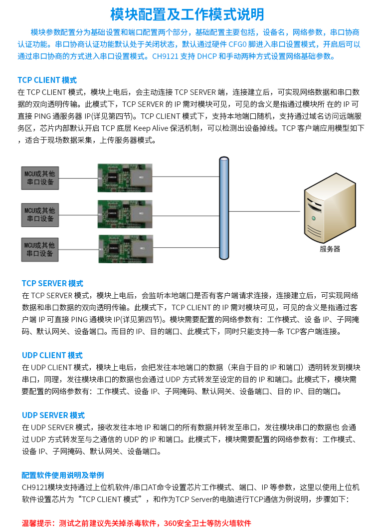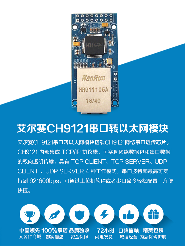 CH9121串口转以太网模块 串口服务器 单片机联网模块