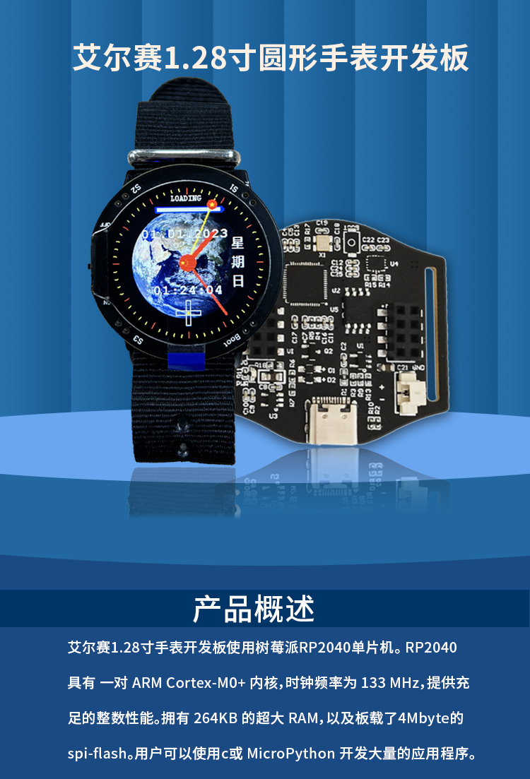 1.28寸圆形手表开发板 树莓派Rp2040开发板 TFT显示屏