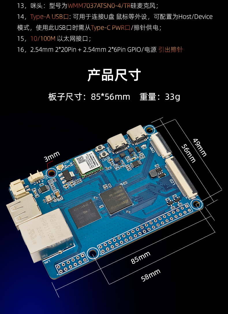 LCPI 瑞芯微RV1106G3 嵌入式ARM Linux 人工智能开发板